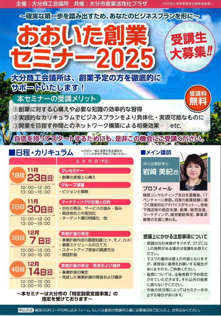 ※本セミナーは大分市の「特定創業支援事業」の指定を受けています。