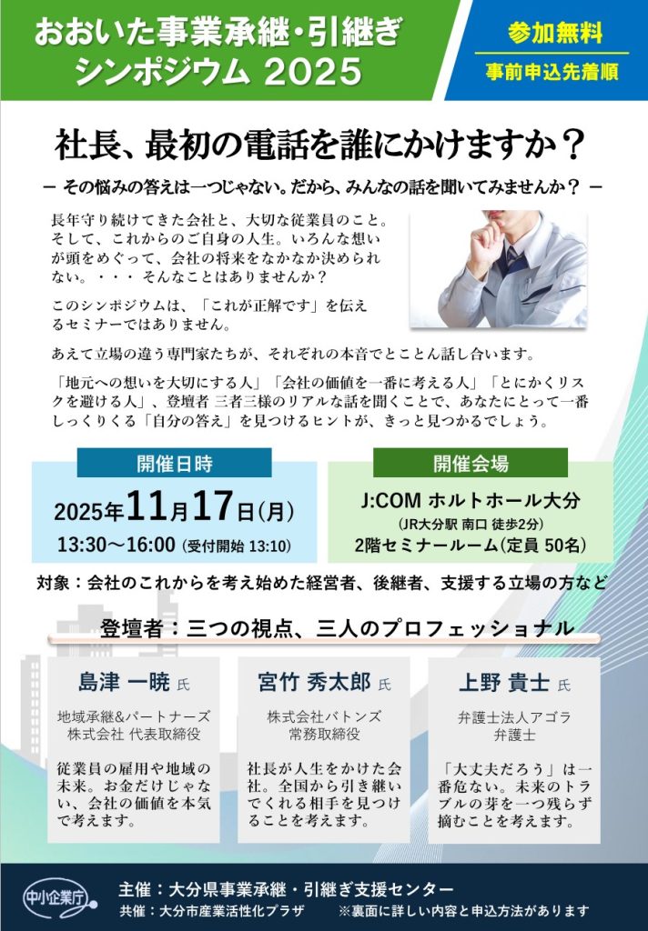 【大分県事業承継・引継ぎ支援センター】おおいた事業承継・引継ぎシンポジウム2025
